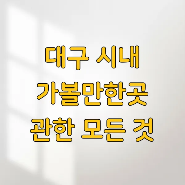 요즘처럼 날씨가 좋을 때, 혹은 주말을 이용해 가볍게 나들이 가기 좋은 곳들이 정말 많답니다. 설레는 마음으로 함께 대구 시내의 다채로운 매력을 탐험해 보실까요?