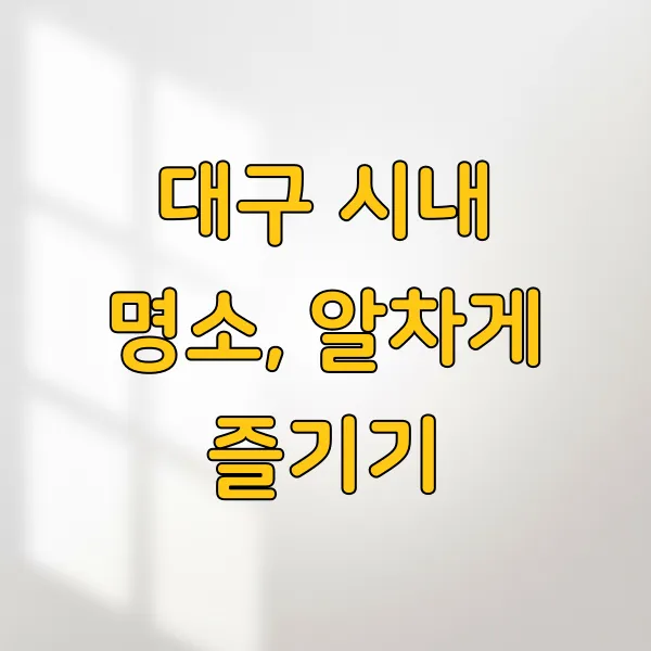 복잡한 대구 시내, 어디부터 가야 할지 고민이신가요? 맛집 탐방부터 쇼핑, 문화생활까지! 당신의 취향을 저격할 대구 시내의 매력적인 장소들을 꼼꼼하게 안내해 드릴게요. 꽉 찬 하루를 보낼 수 있도록 알찬 정보만 담았습니다.